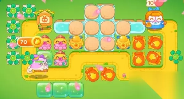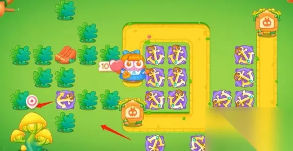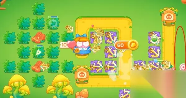绿野奇缘第2关: 1、开局先在中间造一个船锚打钱盒,右边造一个船锚,打出来的兔子,有金币就升级船锚。