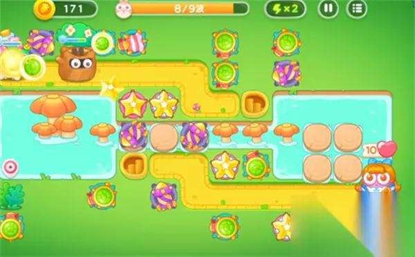 绿野奇缘第4关: 1、第一波先放个瓶子炮进行对战,等到升级之后再放一个瓶子炮。