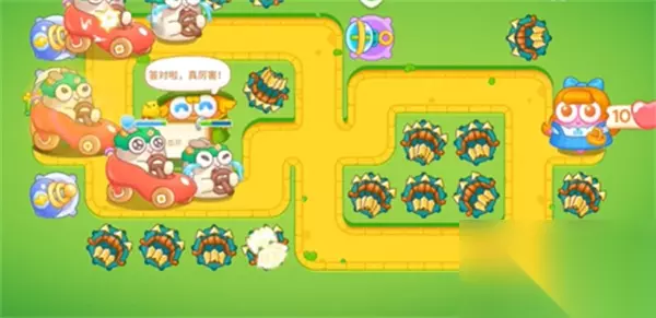 绿野奇缘第3关: 1、开局先在左侧和中间下方位置放置一个忍者镖,左侧升到满级,中间的打障碍物。