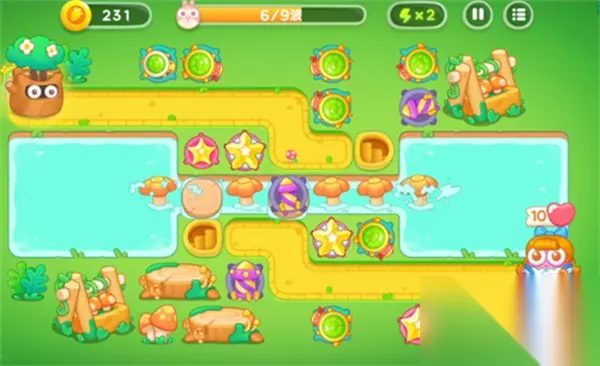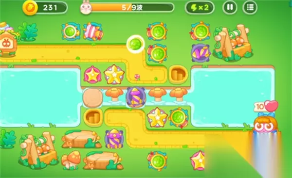 绿野奇缘第5关: 1、首先放置两个多重箭,不断交替清除障碍物和打兔子。