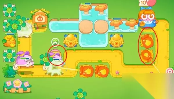 3、第三波按照下方图片位置摆放四个瓶子炮攻击兔子。