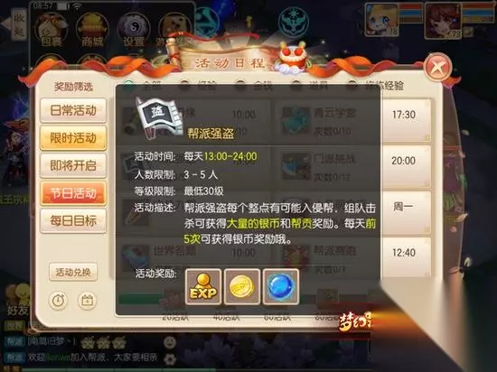 大到一些活动,比如帮派任务、帮派强盗、帮派竞赛,帮派赛跑,小到日常福利,如帮派赏月、帮派技能、帮派礼包等,都给我们带来诸多的游戏乐趣。本次我便和大家一起分享下帮派活动之一的帮派强盗是怎么玩的。