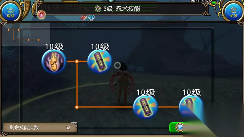 [3]双剑技能:双剑要领1(为了精炼能同时装备两把单手)步步为营1级,这俩最好星石代替,只需要一级 [4]忍术技能(需消耗一本忍书) 忍术10—忍道10—忍术锻炼I 10——忍术锻炼II 10