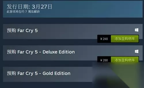 《孤岛惊魂5》是育碧即将与3月推出的开放世界射击游戏,游戏将背景设定在蒙大拿州希望郡,一个充满自由与勇士的土地,同时也是名为“伊甸之门”著名毁灭日邪教的所在地。作为一款人气系列的最新作,许多玩家应该都已经准备好钱预购了,而Steam商店页面有248元,288元,368元,而这三个版本应该买哪个,下面小编带来一篇购买的建议心得。