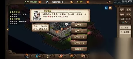 前置任务:【异香疑云】,【洛阳不平】,【捉贼拿赃】。 子时,苍狼(14,12)触发剧情,(11,5)哨塔对话苍狼武人,原来惩罪谷里的逃犯都被放跑了。 帮李富贵找回囚犯,在鄯善周围城镇寻找囚犯踪迹。 敦煌(11,3)触发,(15,12)阻拦,打一架。(15,13)对话。 选【答应同行】,会给文烟飞鸽传书(要一副文房四宝)(选拒绝,需要自己去峨眉找文烟,且不会有以下剧情)。 到十方集触发剧情,又有两个囚犯打架,选【出手】(还有个袖手旁观没试),过一段剧情继续走。 到天山,首先需要躲避暗箭,然后你跟王景一起掉进陷阱里,背王景一起上去,发现不行,自己一个人先上去。 准备「止血散」×5,「麻绳」×1,救王景上来,正好文烟此时也来了,解释一下,到(8,4)去。 ps:(14,22)居仙亭搜索可以开视野,然后再从(16,4)向西跳到(8,4)。 一段剧情过后,原来王景就是守宫!对话,最后选择救人或者不救。 选救人,去各地医馆打听一遍噬魂之毒(十方集,成都,凤鸣集,南阳渡,洛阳,落霞镇,幽州,姑苏,杭州),最后柳如意要你去药王谷。 找到药王对话,需要「雪莲」×5,「金银花」×20,「当归」×20,等待15分钟拿到解药,回去救人。 选不救,则无后续剧情,文烟一脸失望,任务结束。 最后不论何种选择,均可获得5点声望,5000阅历。