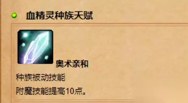 奥术亲和:种族被动技能,附魔技能提高10点。