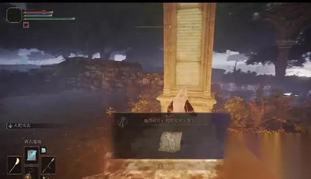 3.随后到关卡前方激活福赐,看到本作防火女,获得马;然后去关前废墟里面,触摸营地里的石碑,获得地图碎片:宁姆格福西,解锁地图。