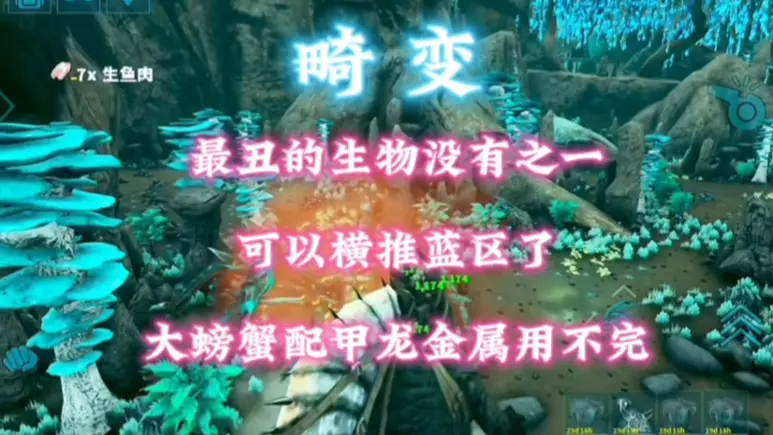 这是《方舟:生存进化》手游畸变地图的游戏内容,玩家计划寻找高级雄性棘背龙,准备前往红区逮捕大螃蟹,途中击杀了畸变棘背龙获取物资,还尝试制作工具和装备。