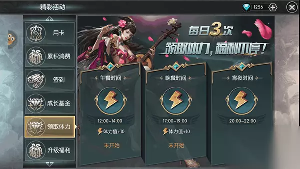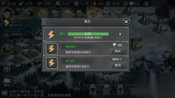 那么,对于要发展的玩家而已,把握获取体力的途径至关重要。 体力途径(平民模版): 【1】日常回复:每30分钟回复一点体力。预计每天48点 【2】体力购买:根据VIP的等级,购买体力的次数有所限制。平民一天可以获取购买2次体力,每次体力20点。 【3】体力盛宴:每天有三个时段可以领取定额的体力。在12点-14点、17点-19点、20点-22点三个阶段,每次可以领取10点体力。 【4】战役宝箱:在通关副本的时候,根据一定的星数可以获取战役宝箱,有些宝箱里面可是有体力的哟。备注:三星通关才是王道。