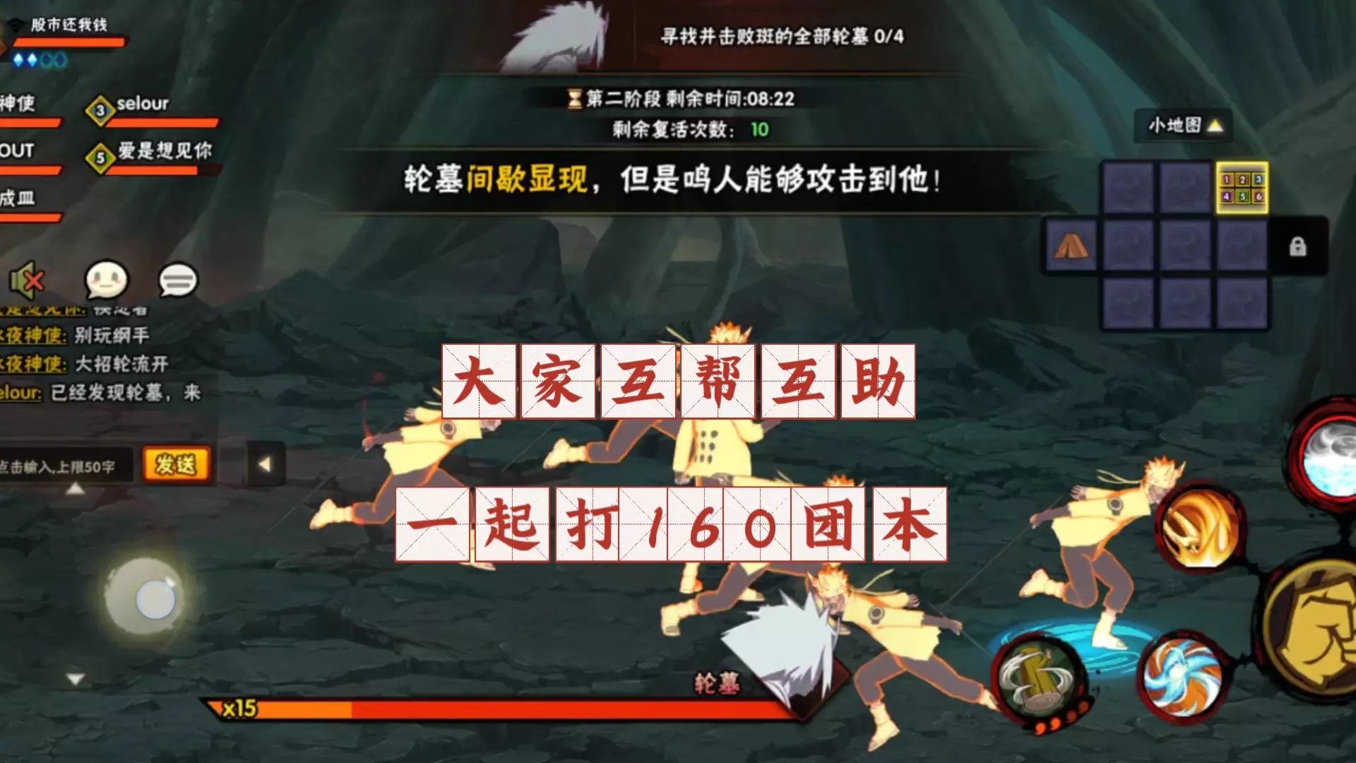 玩家分享《火影忍者手游》游戏体验,称其是最好玩的游戏,还提到自己在160团本第一把就出了究,同时展示了决斗场和团本的游戏画面。