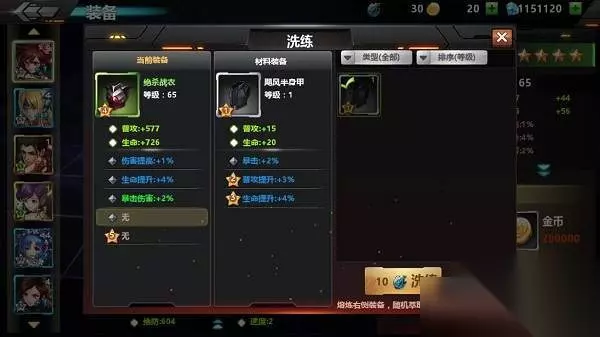 洗炼比较复杂些,消耗材料装备和洗炼石来获取它的某一条附加属性,是随机获取的,所以想要好的属性要多次洗炼才会成功。玩家可选择一条想要被换掉的属性,对其进行洗炼,有可能获得对面8条属性的任意一条,洗炼需谨慎。 三、装备分解 可对不需要的装备进行分解,可获得补给碎片和培养用的金币,补给碎片可用来兑换基因之心和基因之眼的升星关键道具哦~