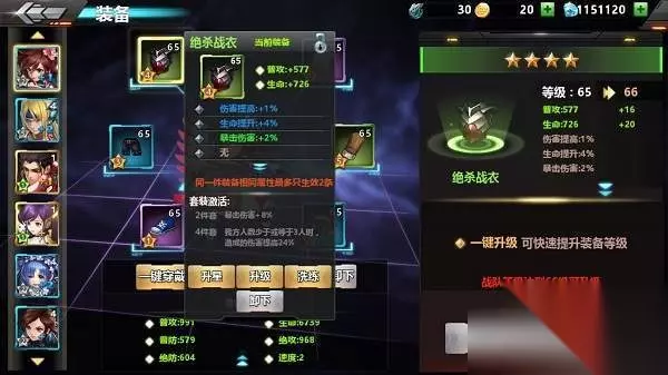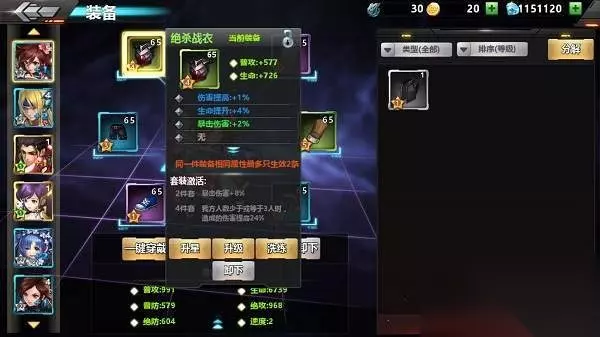 1、 基础属性 装备系统中每个位置的基础属性都是固定的,每个位置都是两个属性加成的,像左上位是增加普通攻击和生命的,其他位置的就等各位去游戏中发掘咯。 2、 套装属性 装备套装属性分成2件套和4件套属性,根据装备的种类来区分,比如生命加成,普攻加成,暴击率,暴击伤害等等。在使用中一般 4+2的搭配,主攻1套4属性和1套2属性。部分英雄追求极致某个2件套属性的可以考虑2+2+2这种搭配。 3、 附加属性 附加属性条数由星级决定,每升星一级解锁一个附加属性。附加属性不受装备升级和进阶影响,若没有洗炼则每件装备是固定的,跟随星级提升来解锁。附加属性还可以通过洗炼来获得更好的属性。值得注意的是对于同一个装备拥有多条相同类型的附加属性,只生效数值最高的3条哦。 二、装备培养 总共有3个方面,升级,升星和洗炼。