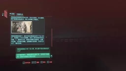 根据玩家的选择,此任务可以有两种结局: ①选择与他谈判,并在最后放弃击杀米尔科即可打开他们身后的门,离开巫毒帮基地。 之后汉兹的委托人得到了网监的保护,同时获得了网监的好感。