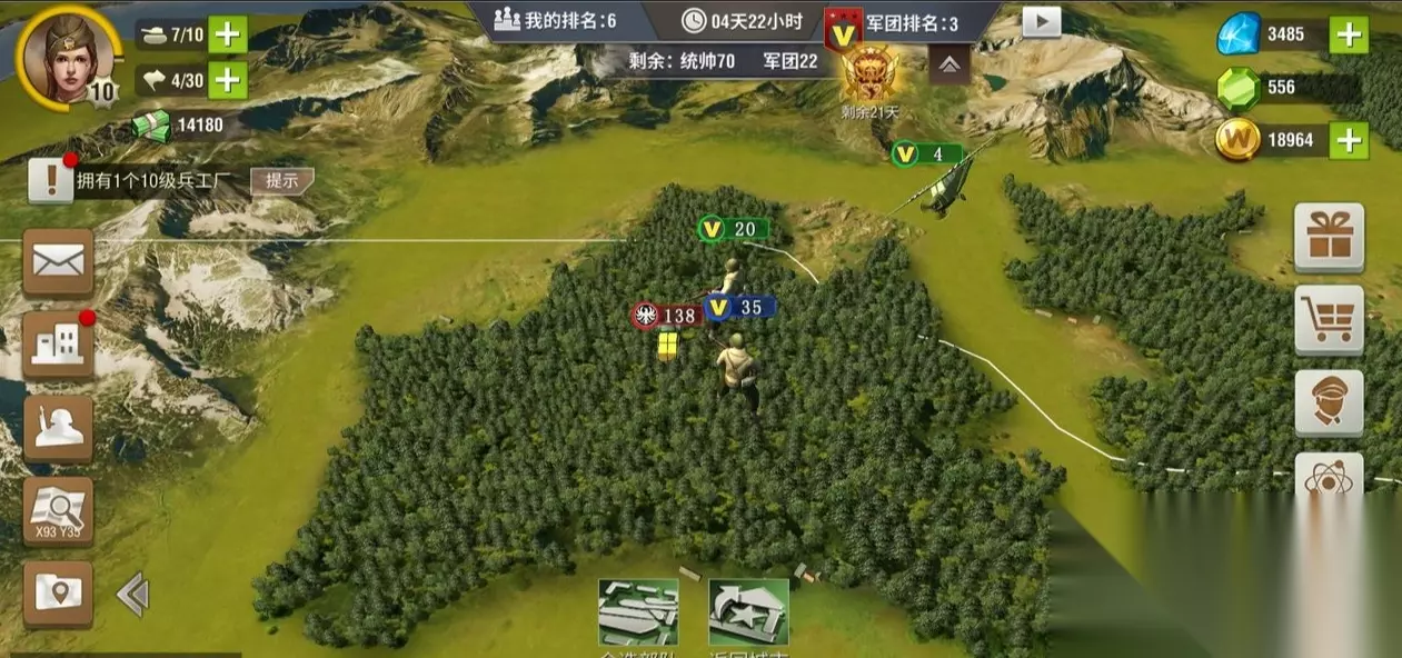 军衔的高低决定了你统领兵力的多少,高级的军衔可以同时控制多个队伍,在攻打玩家主城时有着高级军衔可掠夺的资源会增加30%左右,声望也会增加50%左右,而资源和声望又是你提升军衔需要的东西,完美形成闭环,如果你的少将还可以进行跨战区指挥战斗,只要你的队伍够多可以在同一时间对3个城市发动攻击,掠夺资源的速度更加快了。