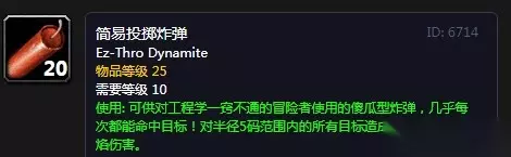 魔兽世界怀旧服简易投掷炸弹 装备效果:对半径5码范围内的所有目标造成51-70点火焰伤害。