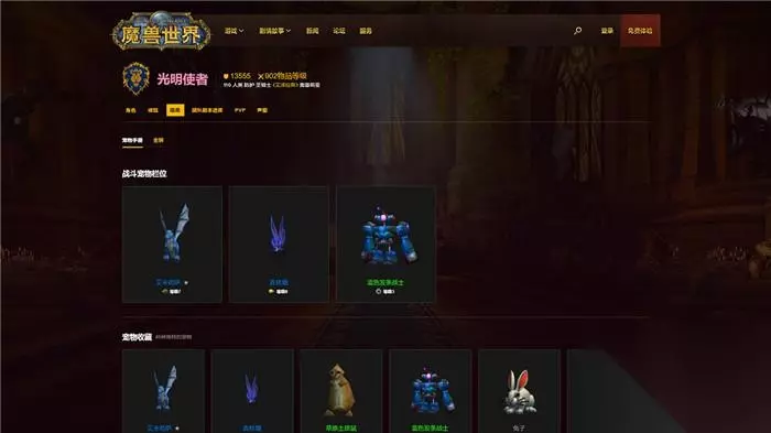 藏品 你将在这里找到目前装备的宠物对战队伍,以及完整的宠物收藏。“宠物手册”将展示所有可爱或致命宠物的最佳形态。和游戏里的一样,宠物将首先依照偏好,然后依照等级进行排序。而你的所有坐骑将按照稀有度进行排序。手册可以帮助你记录,让你查看自己在什么时候拾取了某个极其稀有的宠物,制作了某个宠物,从某个强大(又凶狠)的首领身上获取了宠物,或者完成某项艰巨任务后获得了渴望已久的宠物。手册里面什么都有。