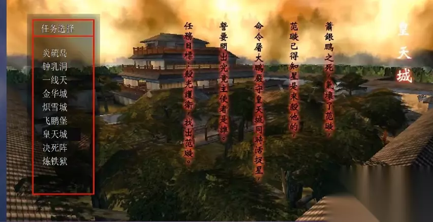 第七关皇天城是游戏后期难度较高的关卡,敌人数量众多且实力强劲。开局后玩家会获得一把剑和火铳,建议优先使用金枪作为主武器,因此可以丢弃火铳拾取场景中的金枪。进入战斗区域时应避免正面冲突,可选择从二楼潜入,利用地形优势将敌人逐个击破。进入游戏后立即按下ESC键取消所有对话,快速获得角色控制权以抢占先手优势,避免在初始阶段陷入被动。
