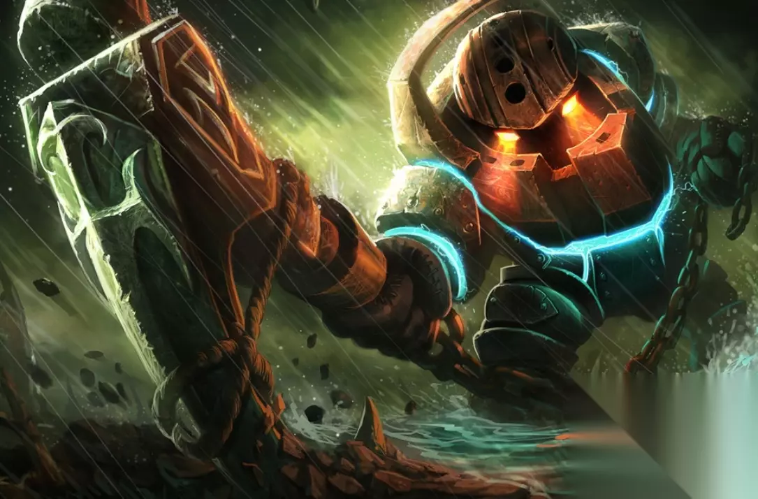 泰坦的英雄背景: 在比尔吉沃特立起第一座码头的时候,有一个孤独的传说。 身着铁甲的巨人诺提勒斯在蓝焰岛附近的黑暗水域中徘徊。 他心里记恨着一桩不可原谅的背叛,毫无预警地出手,甩动巨大的船锚,拯救落难的可怜虫,或是将贪婪的人拖进末日。 据说,没有缴“比尔吉沃特什税”的人就是他的目标。 他会带着他们和自己一起沉入波涛——相当于一个铁板钉钉的提醒,没人能逃脱深海的制裁 。