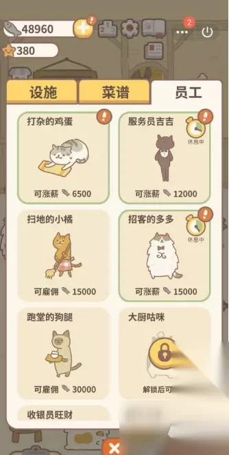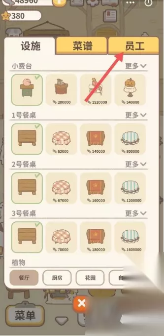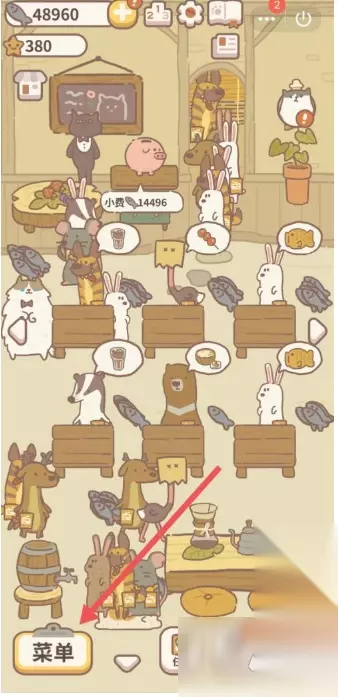 玩【动物餐厅】,不想事事都手动操作,好的办法就是【雇佣员工】。当然前提是你的【小鱼干】够多,才能雇到你想雇佣的员工。 点击左下角【菜单】。
