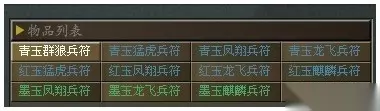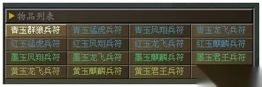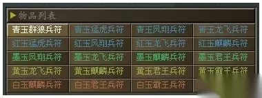 对于目前的兵器,铠甲,战马,披风以及兵书和兵符。由于目前战法流的横行,战马的需求无疑都是人手一匹。然而相反的,术士流在《傲视天地》里的为难地位 也让兵书只能从而国民币朋友的选择。由于许多高品德的兵符需要 必然VIP等级才可以购置,而且兵符高昂的强化费用也让很多朋友望而却步。 备注:红色兵符购买权限是最高权限 出售价格依次叠加1500。每晚10点刷新,1分钟买1个。10点半后取消限制,可打包购买! 青玉群狼5250 青玉猛虎6750 青玉凤翔8250 青玉龙飞9750 红玉猛虎11250 红玉凤翔12750 红玉龙飞14250 红玉麒麟15750 墨玉凤翔17250 墨玉龙飞18750 墨玉麒麟20250 墨玉君王21750 黄玉龙飞23250 黄玉麒麟24750 黄玉君王26250 黄玉霸王27750 兵符,也称为虎符,制成两半,右半留存在国君,左半交给统帅。调发军队时,必须在符验合后,方能生效。虎符作为调兵遣将的兵符,也将作为玩家装备,给你的雄图霸业保驾护航。 中国古代对虎的形象十分崇拜,特别是在军事上,于是用金属铸成虎形,背面刻以铭文。虎的形状各异,或为伏状,或为疾奔状,象征军威或进军神速。要玩《傲视天地》传承诸子百家精髓,将创新独特的神秘虎符系统嵌于游戏中,数十个形态各异的虎符,给玩家们带来虎虎逼人之气,三国霸业从此虎虎生威!