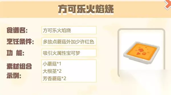 15、【方可乐火焰烧】 配方:小蘑菇*1+大根茎*2+香菇*2