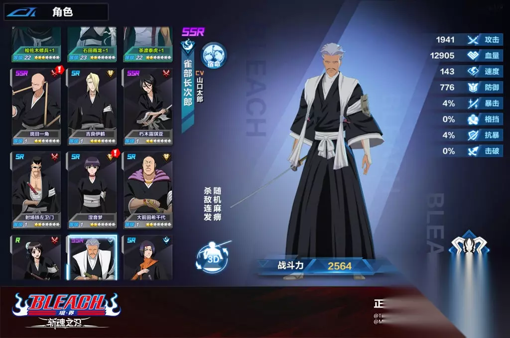 《境界:斩魂之刃》雀部长次郎技能介绍 雀部长次郎个人资料: 雀部长次郎是一番队副队长,长期辅佐老将山本元柳斋重国的副官。对英国绅士有着特别的憧憬,作为死神罕见得穿着西洋风的服装。在《境·界:斩魂之刃》中,雀部长次郎擅长以雷电之力麻痹(1回合无法行动和攻击)敌人,同时造成大量伤害! 雀部长次郎技能解析: 技能【电击】:斩魄刀射出一道紫色的电击,产生雷云降下雷暴,对敌方单体造成大量伤害,同时概率麻痹击中单位。 必杀【紫色闪电】:斩魄刀聚集大量灵压,使天降雷电对敌方全体造成高额伤害,如有目标于此次攻击中阵亡,则下回合释放灵力消耗为0,无人阵亡则为50灵力。 专属【乌云雷电】:每回合开始前,概率麻痹一个敌方直至本回合结束。 以上就是给大家带来的《境界:斩魂之刃》雀部长次郎技能介绍啦,想要了解《境界:斩魂之刃》最新游戏的资讯与攻略,可以多多关注我们233乐园游戏攻略网站哦。