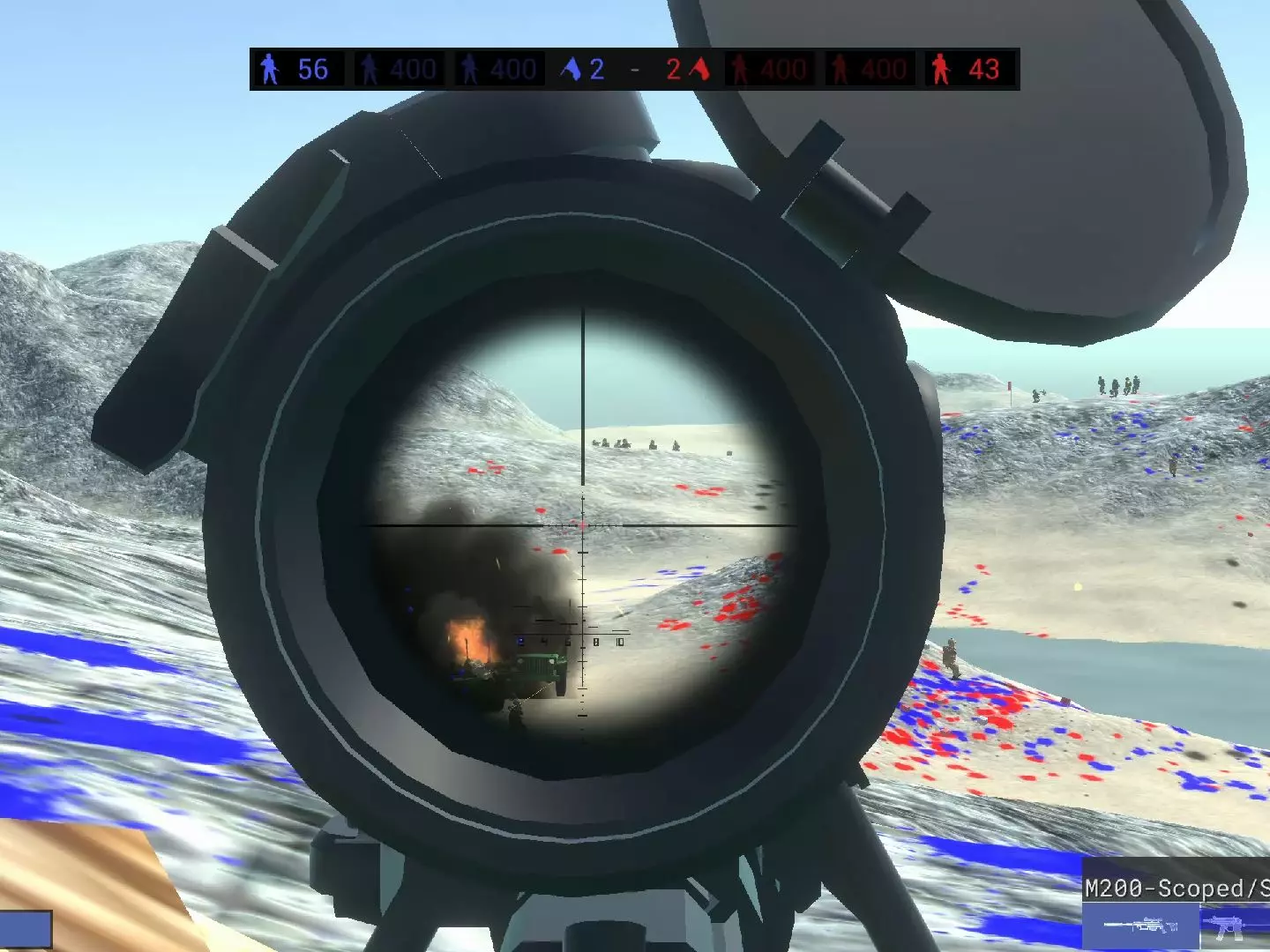 这是一则《战地模拟器》的游戏实况内容,展示了游戏里的对战场景,玩家可使用烟雾弹、消音冲锋枪等道具武器,在不同地图场景中参与红蓝阵营的对战,体验战场作战的乐趣。