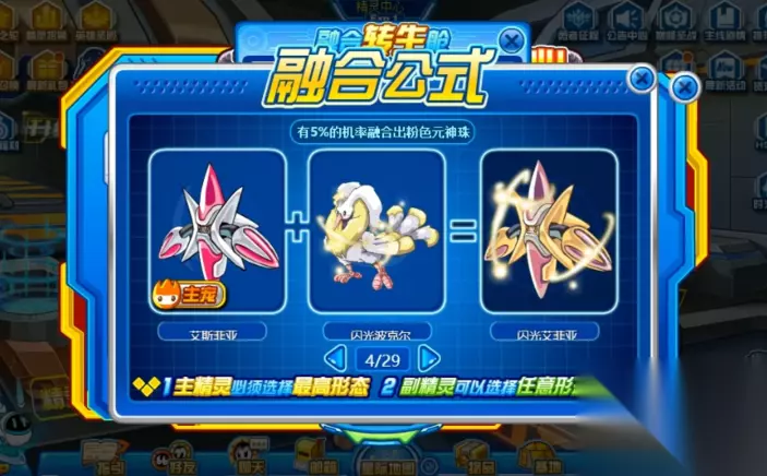 其他融合公式: 布布花与魔花仙子结合,变身丽莎布布。 巴鲁斯和鳞甲龙鱼融合,成为鲁斯王。 烈焰猩猩与洛吉拉斯相融,化身为魔焰猩猩。 艾斯菲亚和闪光波尔克合体,形成闪光艾菲亚。 卡斯达克与鲁加斯结合,创造出卡鲁克斯。 灵翼蜂搭配哈尔浮,变身哈尔翼蜂。 克洛亚与克林卡修相合,成为古雷亚。 多鲁姆和贝尔鲁斯融合,形成多鲁鲁斯。 雷吉欧斯与雷吉姆斯结合,产出托雷塔斯。 洛比特搭配沙罗希瓦,变身索比拉特。 天雷鼠与卡尔加斯相融,成为泰瑞。 加格尔和查尔顿结合,形成提姆提姆。 萨洛姆斯与伊娅斯融合,产出艾克里桑。 伊洛花和埃洛兽结合,变身布莱卡恩。 埃洛兽与史沃勒合体,成为库洛卡。 撒格利加和纳鲁洛特相融,创造出德格拉克。 远古甲虫与塔姆拉结合,化身为远古塔拉。 波尼斯搭配依卡莱恩,变身依卡劳特。 史沃勒与贪食龙融合,形成沃德斯特。 贪食龙和嘟嘟卡拉结合,产出卡拉巨龙。