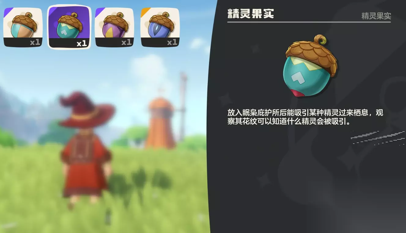 召唤完成后树木会结出精灵果实,这时需要把果实给摘下来,如果玩家们来此地没有看见该树,证明之前有摘过果实,可以查看自己的背包,有没有长成下图这样的果实。