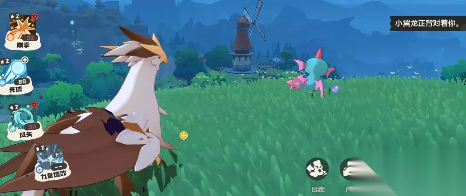 拿到果实后,我们随便在地图上找一个眠枭庇护所,在这里放下果实,周围就会刷新小翼龙了,最后只要跟它战斗并丢出咕噜球就可以了,需要注意战斗过程中一定要注意好小翼龙,别不小心直接打死。