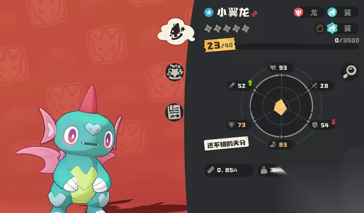 小翼龙的特性“暴食”能在使用龙系技能后得到迅捷效果,所以大家捕捉后可以给它装配一些龙系技,另外它的种族值虽然不高只有407,但只要耐心培养,它就会在40级的时候进化成更加强大的翼龙。