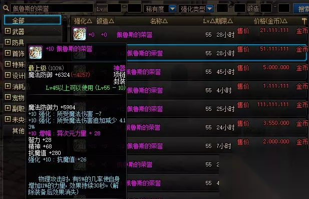 那么对于这件装备在几年前爆出来真的能发财吗?首先[遗]佩鲁斯的荣誉只能算是佩鲁斯荣誉的替代品,力智加加成要比佩鲁斯要少1%,而且遗忘之地是85版本的副本,当时的佩鲁斯已经不是很值钱了,加上黄金梦系列的出现,[遗]系列在当时也就2000W左右,最多不会超过5000W,和60版本的佩鲁斯相比算不上发大财,只能算发了点小财。