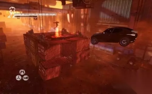 第十五关:交易(The Trade) 钥匙:2 秘密之门:0 迷失魂魄:0 本关比较简短,在2分钟内完成关卡可达成一项成就。在交易的时候发生变故,维吉尔擅作主张射杀了莉莉丝,导致曼达斯的狂怒,他发出的冲击波将半个城市几乎摧毁。维吉尔载着凯特逃离现场,陷于灵薄狱的但丁沿途保护他们的安全。 关卡开始,维吉尔和凯特所乘的汽车撞向空中的集装箱,用蛇鞭追上汽车,跳到右边将那只集装箱拉开。汽车继续冲向一堆集装箱,集装箱上有红水晶,先不管它,往左边的一片集装箱跳过去,从地上拾取一枚青铜钥匙(1)。收集钥匙的话,可能会死一次,重新来过。 用拳套坠地攻击几次,最后将集装箱砸塌,汽车从但丁的头顶飞越过去。往前用蛇鞭追赶汽车,飞越街道塌陷的深坑,前面出现几只幽影和破坏者,不必理会它们,用蛇鞭拖开飞机的螺旋浆,让汽车顺利通过。 跳到一辆厢式货车上,街道在逐渐坍塌,利用空中的蓝环飞越深阱。落身到坚实的街面后,注意街右侧有道蓝色藤蔓的门,用旋镖割开它,跳过去拾取小活力之星。往前拉动一辆客车,跳到街道的左侧,由墙角的集装箱跳上去,再纵身到相邻的平台拾取青铜钥匙(2)。 跳到大桥底部,用拳套击破桥墩上的红水晶,大桥发生坍塌,维吉尔的汽车顺利通过