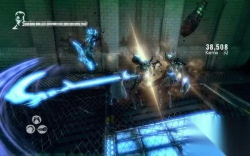 第八关:无眼人(Eyeless) 钥匙:1 秘密之门:2 迷失魂魄:5 老者说那些鹰身女妖偷走了他的机械眼睛,但丁得找到机械眼,老者才能带着他前往新闻塔。老者吸引出一群女妖,但丁跳过去惊跑了她们。一路追随,搜寻她们的的巢穴。 用蛇鞭技能尾随女妖,在拉出一道平台后,走廊出现塌陷,跳到走廊左侧,用拳套破开墙壁的红水晶。往前看到走廊右侧的墙壁有道蓝色藤蔓的门,在第十关拿到武器天鹰旋镖后,用它切掉墙上的蓝藤,进去拿迷失魂魄(1)和秘密之门(1),挑战隐藏关卡:天堂体验(A Taste of Heaven),要在1分20秒的时限内杀掉11只怪物,战斗中但丁和怪物都是一击必杀的,因此灵活的躲闪很重要。 继续往前击破红水晶,进屋拿小活力之星。往右用蛇鞭拖出翔跃之环,飞身跳进一条管道,前面是地铁隧道,往左侧墙壁找到迷失魂魄(2),然后沿隧道往右走,注意躲避呼啸而来的地铁。 跳落房间清理敌兵,其中有地狱和寒霜骑士,注意切换武器。注意房间右侧的栅栏后有把白银钥匙。沿着隧道继续走,沿右侧的走廊找到蓝色藤蔓的门,用镰刀割开它,进去拾取白银钥匙。回到方才战斗的房间,跳到左侧的通道,用双枪射击出现的恶魔碎片。击碎红水晶跳到另一边的走廊,这里有座圣像。 跟随鹰身女妖继续走,两侧各有一间壁室,右侧的壁室有只迷失魂魄(3)。左侧壁室里是一道秘密之门(2),用白银钥匙开启,挑战隐藏关卡:中级遍历(Moderate Traversal)。在时限内抵达目标地点,这里要灵活的运用蛇鞭的两种技能和翔跃技能。 搜刮完毕沿走廊继续前行,落身到四周是玻璃地板的圆形大厅,两侧各有一只蓝环,用蛇鞭飞身上去找到迷失魂魄(4)和迷失魂魄(5)。返回大厅,用蛇鞭拾取老者的那半边脑袋,上面的机械眼仍能使用。此时出现成群的鹰身女妖和持盾悲怆,都是空中飞行的怪物,运用蛇鞭飞到它们身边来打,实现连续飞跃将其全部清除。落身时要注意玻璃地面会碎掉,尽量落到中央的平台。 现在要按原路撤离,途中要杀些狂怒、幽影、暴君之类。将机械眼交给老者,他从但丁身上看到了斯巴达的影子。他自称是菲尼斯,一个学者、发明家和预言师,现在是魔王曼达斯的政治犯。
