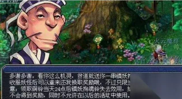 6、等打完4点刷的最后一次怪以后,就可以去鬼谷道人那里交铃铛,然后等他放妖王,妖王是在JY,CS,CS郊外,花果山,BJ,大唐国境这些地方刷。