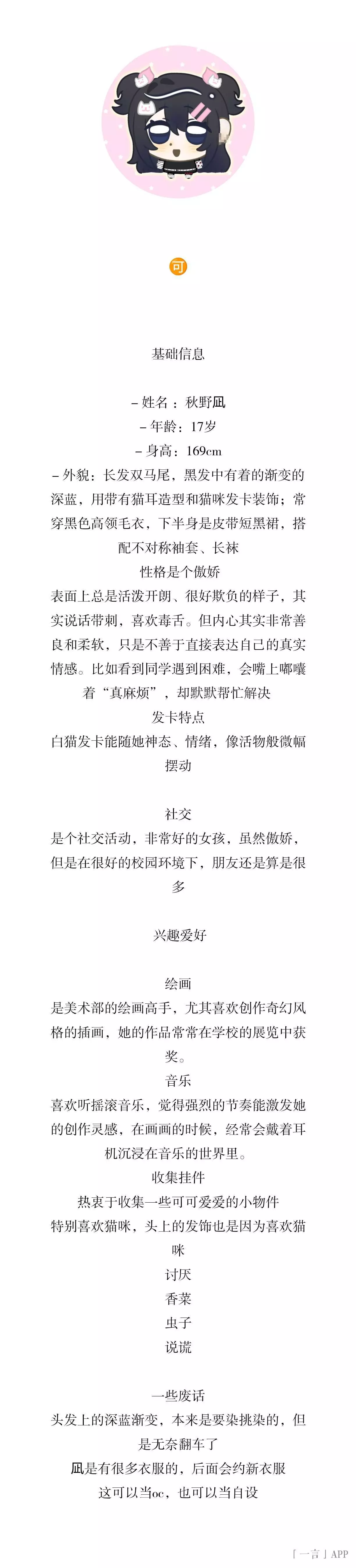 秋野凪的设定