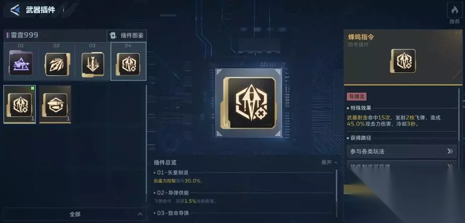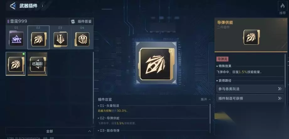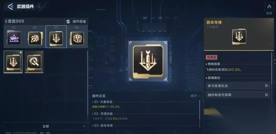 《逆战未来》雷霆999插件选择推荐: 一、飞弹流: 1、这个枪可以同时吃满元素,大弹鼓,射速。