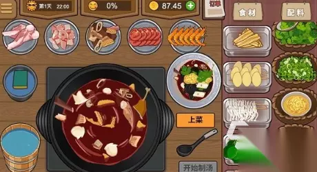 一款围绕厨房展开的模拟经营类手机游戏。在这里,玩家将跟随主角的脚步,见证主角从一名烹饪新手逐步成长为米其林星级大厨的历程。故事从主角接手爷爷传下来的煎饼摊开始,以家常美味的煎饼作为起点,踏上玩家的美食探索征途。游戏中,玩家需要按照顾客的订单,依次点击食材来完成美食的制作,并在食物做好后点击成品交付给顾客。 高速下载 普通下载 优先233乐园APP下载 6、《幸福火锅大排档》