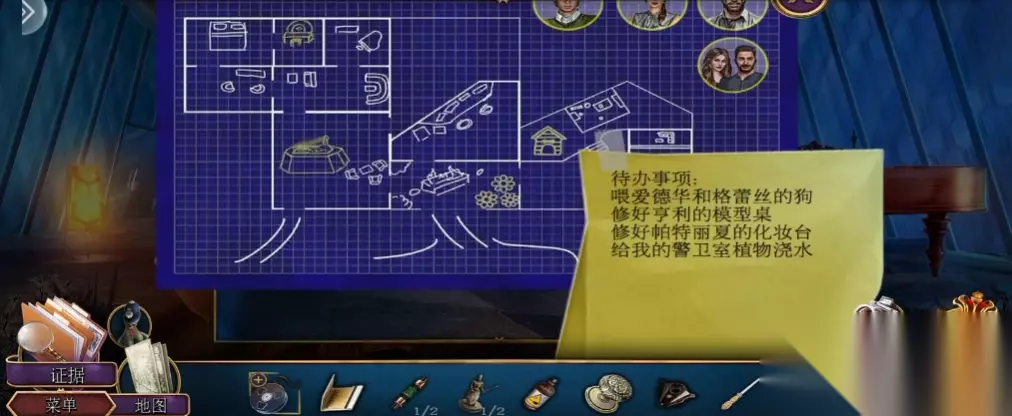 将爱德华和格蕾丝放在房屋布局图的右上角,亨利则放到左下角的模型桌处。帕特丽夏需要去房屋左上角修化妆台,马可则是给房屋下方的警卫室植物浇水,完成布局后会获得半个锻造的钥匙。角色来到后院的保安室后会看到一个维修箱,利用雪茄刀具可以割断其中的电线。回到后院后利用电线可以勾出大理石之中的道具,如果没有电线的话角色是无法直接触摸大理石的。
