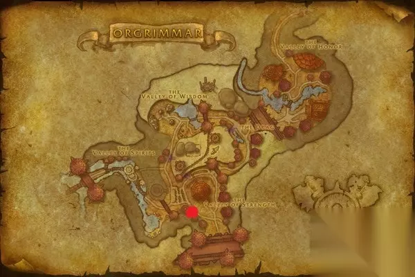 亡灵卫兵奈萨里安所在位置如地图中红点所示。出幽暗城左边一个小营地