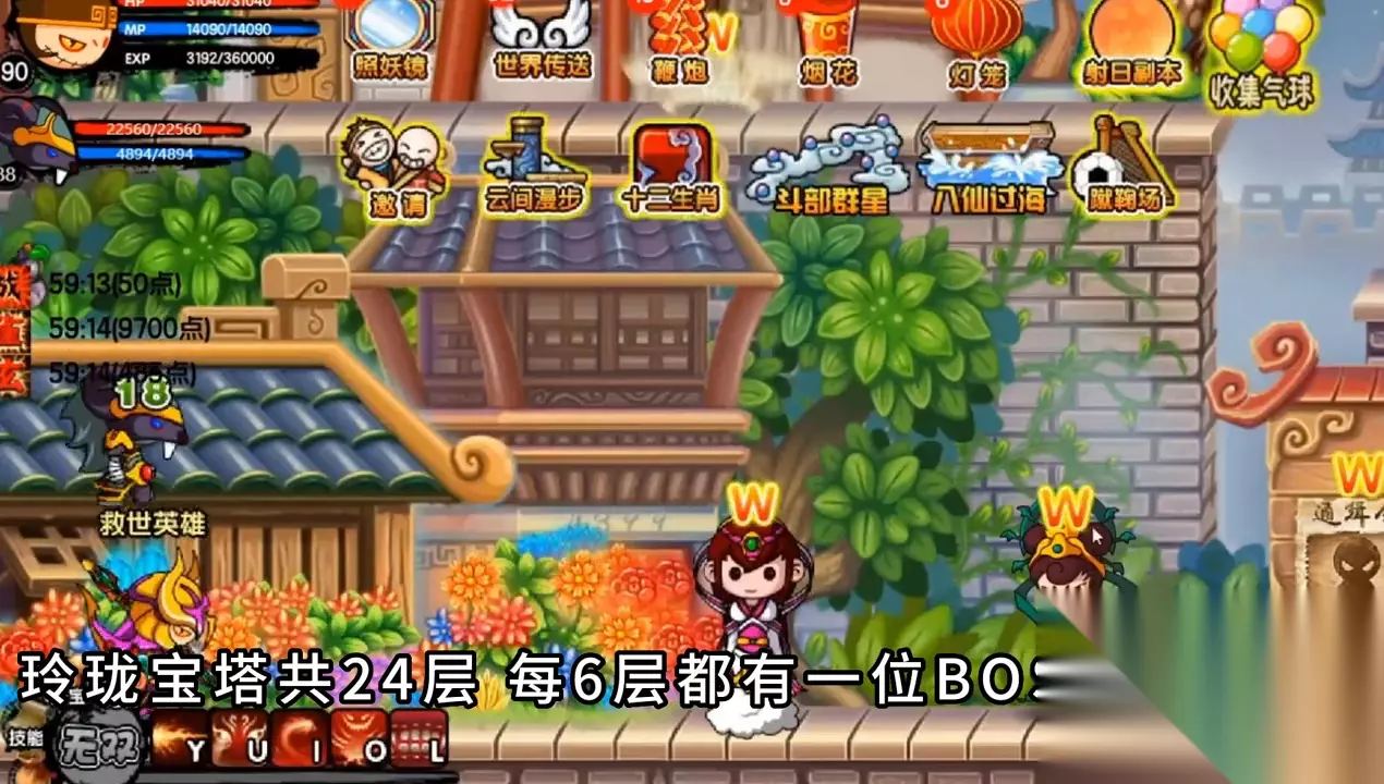 玲珑宝塔共有24层,每6层都有一个BOSS镇守在这里。 第六层有土行村镇守,它精通土遁之术,可以轻松地逃跑。它拥有土灵珠的力量,让人感到恐惧。 第12层由雷震子镇守,它可以支配黑暗之力,并携带雷灵珠的力量,操纵反判之雷,让人失去战斗力。 第18层由哪咤镇守,他有火坚枪、混天绫、乾坤圈、风火轮等神兵法宝,同时还拥有火灵珠的力量,让人感到恐惧。 第24层由托塔天王镇守,他拥有风灵珠的力量,但被黑暗力量所控制,双眼也因此失去了光芒。 但是,当我们完成兜率宫和玲珑宝塔的任务后,仍然没有找到玉帝的下落。相反,在40级时,我们可以打开混沌之门,进入解教天境。虽然这里没有太多需要介绍的内容,但是我们需要打败三霄和三妖,才能真正结束这个任务。然而,当我们完成碧游宫的任务后,我们仍然没有找到玉帝的下落。这张图在当年是为了对付外挂玩家而设计的,里面的BOSS都有上百万的血量。最后,我们需要完成自己的任务,才能真正结束造3的旅程。虽然我们已经成功地救出了玉帝,但是他仍然需要我们的帮助,继续他的旅程。保存成功!