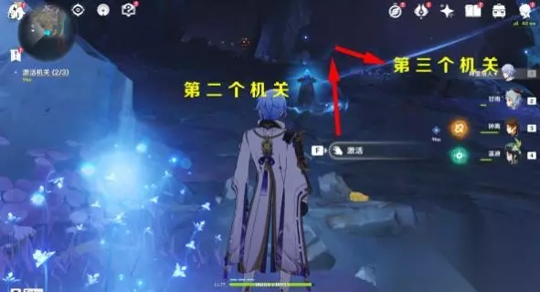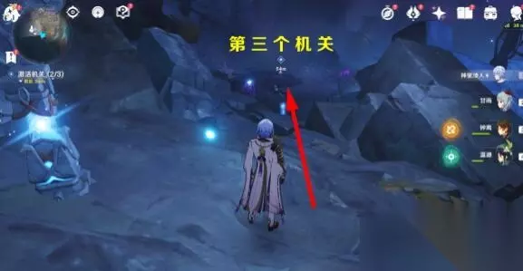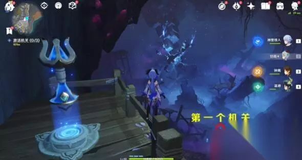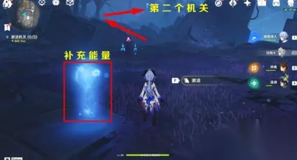 4、来到传送锚点附近就会触发下一步任务,激活三个机关。 利用流明石触媒的能力,破坏「淤泥涌口」与其周边的黑泥,然后激活机关,给机关充能,每个机关充能都需要三格能量,能量不够就在附近找到充能球给流明石触媒充能。 注:此处是一阶淤泥涌口,流明石触媒等级LV2就可以破坏。 第三个机关需要战斗,黯色空壳·旗令×1(破坏淤泥后出现),深渊使徒·激流×1(给机关充能后出现)。