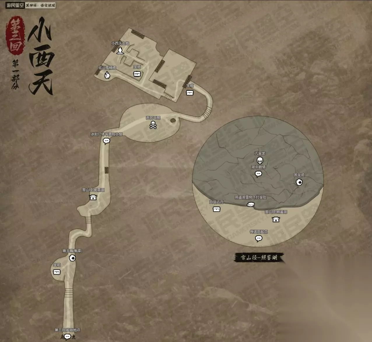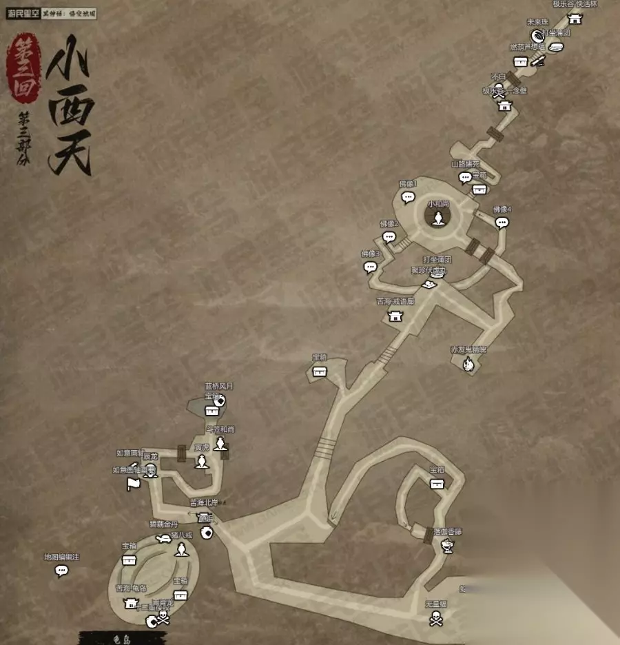 黑神话悟空手游已经正式上线第二天了,游戏中出现了很多的主副线路,很多玩家反映在游戏的过程中很难摸清详细的位置,想要黑神话悟空手游的地图,小编这就给你准备好了。 我们游民星空已经正式上线了《黑神话:悟空》的互动地图;主要依照游戏内的主要路径手工绘制,大小比例存在错误在所难免。 地图包含了所有BOSS、主要收集品与隐藏的触发机制等内容,PC通过左侧的选框筛选你需要的内容并展现在地图上,APP则是通过屏幕下方的“筛选标点”。 ※点击图片即可查看大图。 后续将逐步更新后续地图,第二回地图已正式上线!第三回地图预计24号推出!