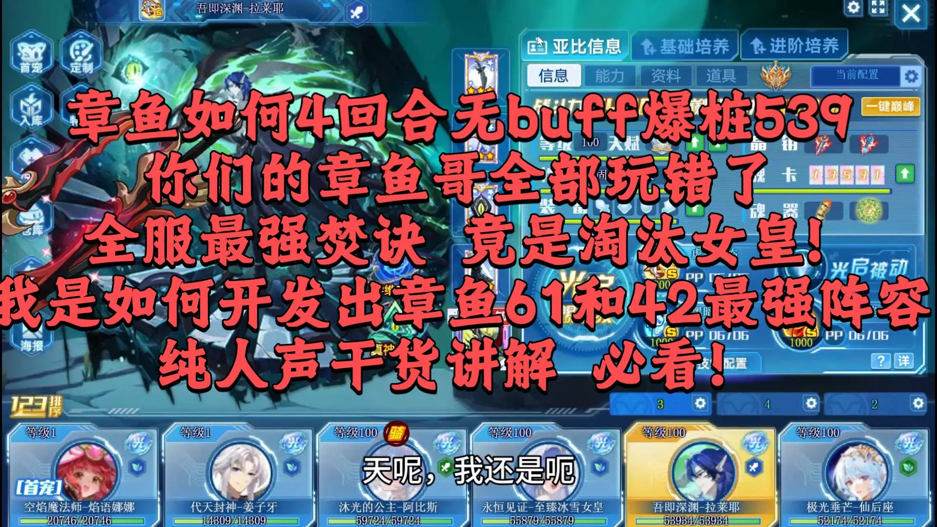 视频讲解了两套配置 一套是拉满的情况 另一套则是不拉满的情况,也就是卡低血量,也就是像凹两回合速刷的玩法,开局送 两套配置不能同时存在,所以说根据你的情况进行选…
