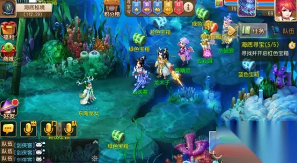 其他说明: 1、海底寻宝的队伍可以更换成员,但更换成员后,队伍寻宝积分将会被重置,所以追求排名的队伍,千万不要更换成员; 2、不按照寻宝令指引的顺序也是可以挑战的,但是无法激活相应颜色的令牌; 3、一轮挑战累计的星星越多在战胜第五个宝箱怪之后给予的结算奖励也会越高。