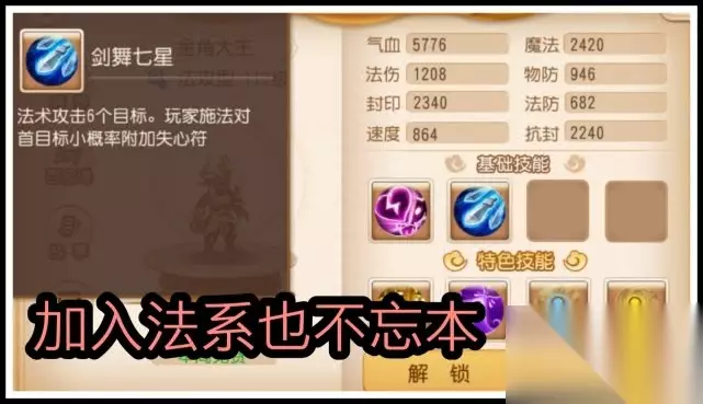 一、技能解析 首要精通技能[失心咒],封印目标法术,降低目标防御力,看到这个技能瞬间让我对他的身份有了不同的认识,这哪是什么法系助战呀,分明就是一个披着法系外套的方寸封系大佬呀。其次,范围性攻击技能[剑舞七星],法术攻击6个目标,虽然攻击范围较低,但是玩家施法对手目标小概率附加失心符,你看看这是法系助战应该做的事情吗?
