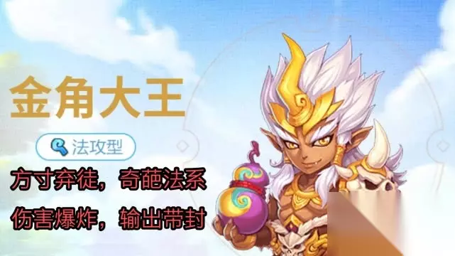 我怀疑金角大王是方寸弃徒,毕竟技能都是方寸来的,但是学艺不精,改投法系,然而天分不足只能秒三,对于这个集火高伤,魔改方寸的奇葩法系金角大王你怎么看呢?