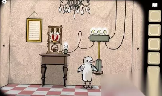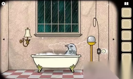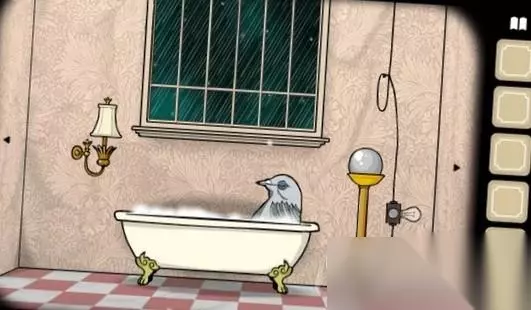 2、在我们打开开关之后,就会有电流进入浴缸里,我们的鸽子姐姐就会被电成烤鸽子,我们点击她就会获得最终的材料了。