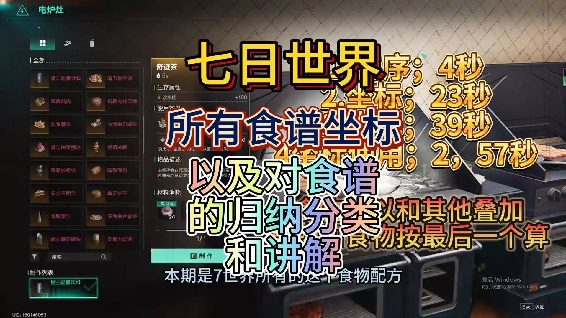 七日世界公测,所有食谱的坐标,以及对食谱的归纳分类和讲解。