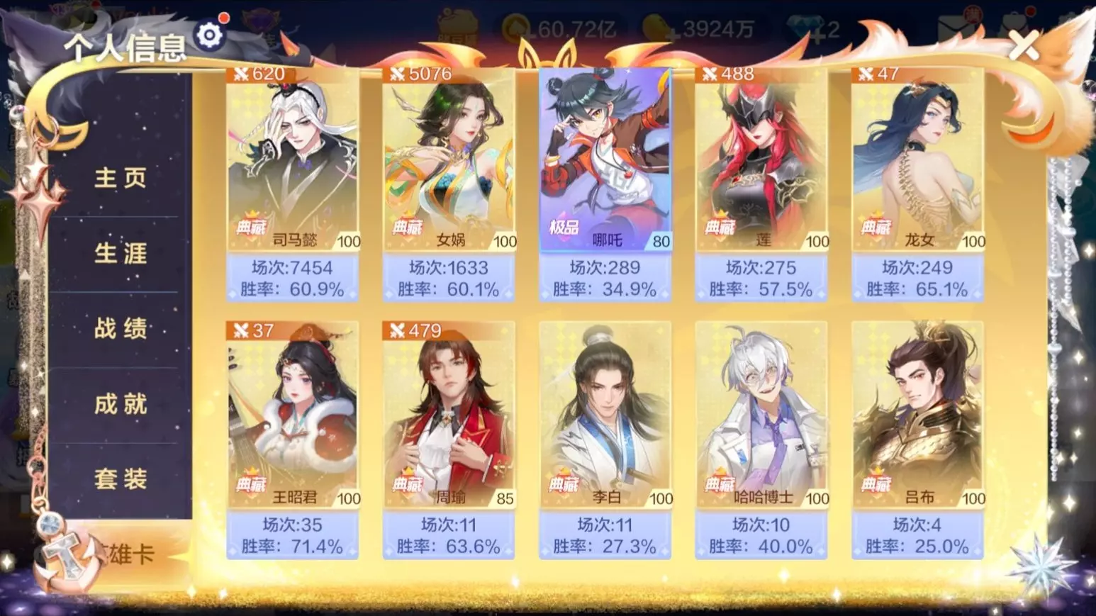 现在斗地主排位完全就是修仙的一样,目前综合实力最强的无疑是女娲,胜率上看司马懿胜率更高是因为司马懿是第一个典藏英雄,后面很长时间也没有同等的强力典藏英雄,所以水…